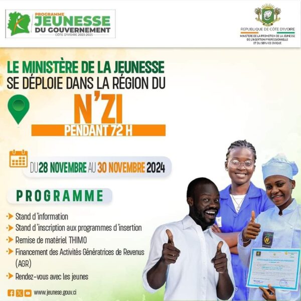 Paradmin14762 décembre 2024Kouassi-Kouassikro, 28 novembre 2024 | 1ère étape du déploiement des Dispositifs du Ministère de la Promotion jeunesse, de l’Insertion Professionnelle et du Service...