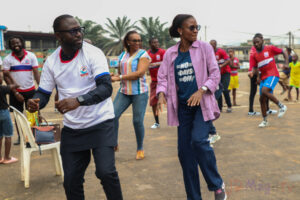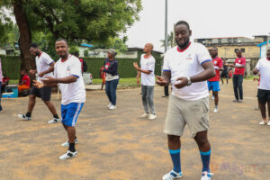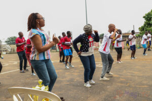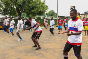 Le programme de la journée a débuté par une séance de fitness, avant de laisser place à un match de football amical opposant l’équipe des Rouges à celle des Blancs. Dans un esprit de fair-play salué par tous, la confrontation s’est achevée par une séance de tirs au but, remportée par l’équipe des Blancs.