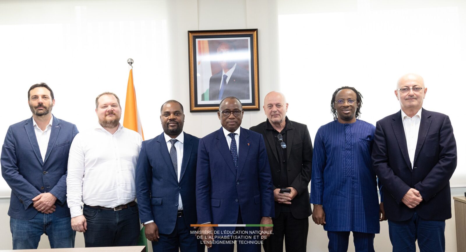 N’Guessan KOFFI, Ministre de l’Éducation Nationale, de l’Alphabétisation et de l’Enseignement Technique, a accordé une audience, ce vendredi 27 février 2026, au 7ᵉ étage de la Tour B, à une délégation de l’ONG internationale italienne AVSI, conduite par son Représentant régional, Lorenzo MANZONI, dans le cadre du Plan Mattei, une initiative de l’Italie visant à renforcer sa coopération avec les pays africains.