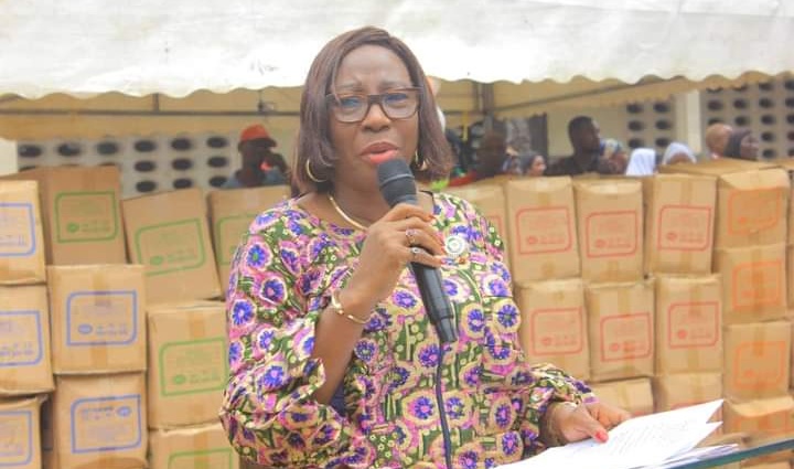 La maire d’Abobo, Kandia Camara, a exhorté les élèves au travail pour obtenir de bons résultats, lors  de la cérémonie de distribution de 45 000 kits scolaires aux élèves des écoles primaires primaires publiques, confessionnelles et du foyer Akwaba organisée jeudi 05 octobre 2023 au groupe scolaire Houantoué.