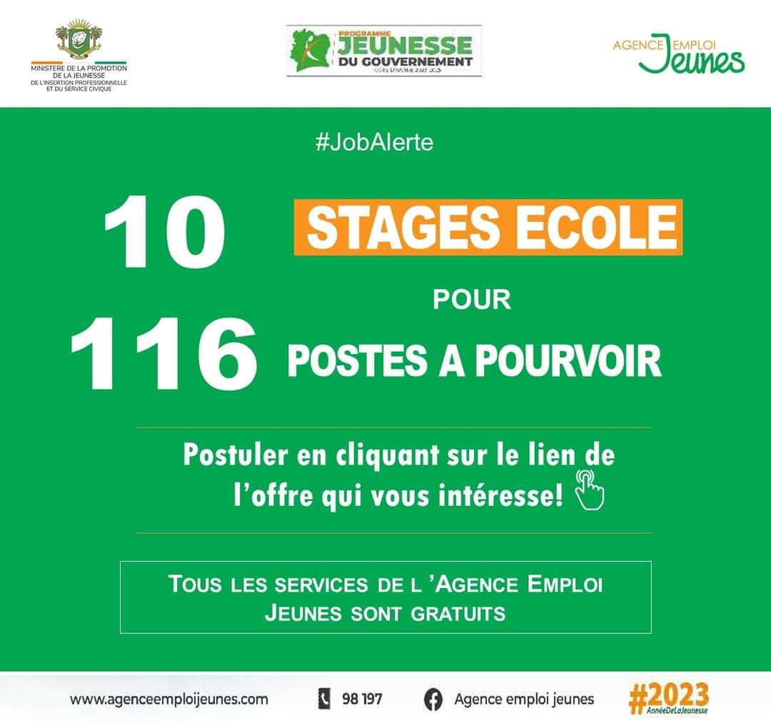 𝐋’𝐀𝐠𝐞𝐧𝐜𝐞 𝐄𝐦𝐩𝐥𝐨𝐢 𝐉𝐞𝐮𝐧𝐞𝐬 𝐯𝐨𝐮𝐬 𝐢𝐧𝐟𝐨𝐫𝐦𝐞 𝐝𝐞 𝐥𝐚 𝐝𝐢𝐬𝐩𝐨𝐧𝐢𝐛𝐢𝐥𝐢𝐭é 𝐝𝐞 10 𝐨𝐟𝐟𝐫𝐞𝐬 Stages Ecole 𝐜𝐨𝐫𝐫𝐞𝐬𝐩𝐨𝐧𝐝𝐚𝐧𝐭 à 116 𝐩𝐨𝐬𝐭𝐞𝐬 à 𝐩𝐨𝐮𝐫𝐯𝐨𝐢𝐫 𝐩𝐨𝐮𝐫 𝐥𝐞 𝐜𝐨𝐦𝐩𝐭𝐞 𝐝𝐞 𝐬𝐞𝐬 𝐩𝐚𝐫𝐭𝐞𝐧𝐚𝐢𝐫𝐞𝐬.