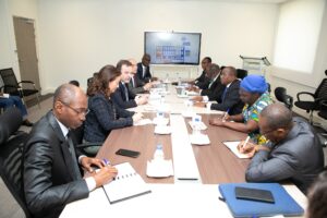 Un échange très enrichissant entre Monsieur le Ministre de l’Enseignement Technique, de la Formation Professionnelle et de l’Apprentissage, N’Guessan KOFFI, et la délégation de L’École spéciale des travaux publics, du bâtiment et de l’industrie ESTP-Paris avec à sa tête Monsieur Joël CUNY, son Directeur Général, a eu lieu, ce Mercredi 14 février 2024, au Cabinet du METFPA, sis au 7eme étage de la Tour B à la Cité Administrative.