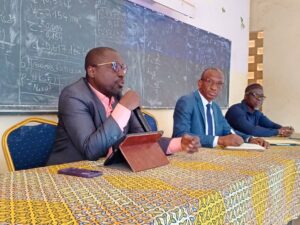 Après les civilités d’usage, les émissaires de la DESPS, Monsieur Beugré Joseph et Monsieur Koffi Désiré, ont animé une importante séance de travail à la salle polyvalente du Lycée Houphouët-Boigny, en présence des Inspecteurs de l’Enseignement Préscolaire et Primaire (IEPP), des Chefs d’Établissements (CE), des Directeurs d’Études (DE) et des Correspondants Fichiers (CF).