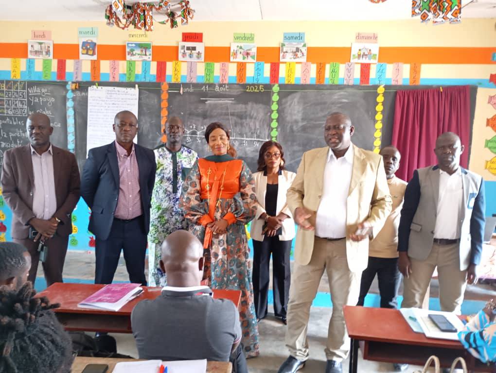 Ce lundi 11 août 2025, le Directeur Régional de l’Éducation Nationale et de l’Alphabétisation de Soubré, Monsieur Drissa Bamba , en compagnie du Chef de l’APFC, de l’agent DESPS et du Chargé de Communication de la DRENA, a de prime abord, rencontré les formateurs nationaux au nombre de six(06) dépêchés en mission dans le cadre de la formation PNAPAS en mode présentiel de tous les enseignants du CE1 et des directeurs d’écoles afin de leur souhaiter la cordiale bienvenue et une fructueuse mission.