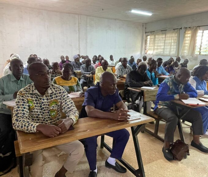 La cérémonie de clôture de l’atelier a été présidée par Monsieur Koa N’gouandi Frédéric, représentant Monsieur Vazoumana CISSÉ, Directeur Régional de l’Éducation Nationale, de l’Alphabétisation et de l’Enseignement Technique de Yamoussoukro, lui-même mandataire de Madame la Directrice de la Pédagogie et de la Formation Continue (DPFC)