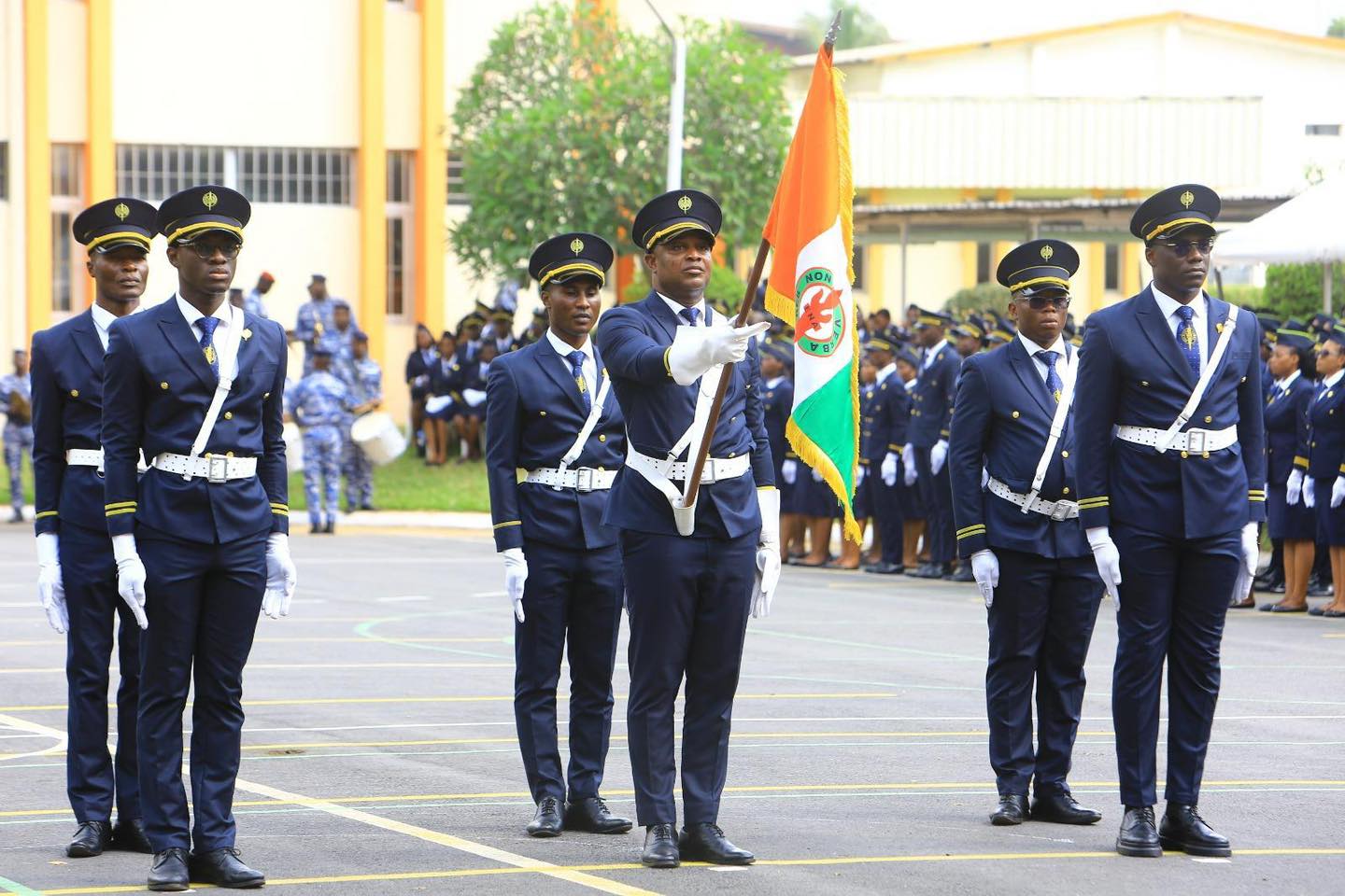 Sous les accents majestueux de la musique solennelle de la Gendarmerie nationale, l’étendard de l’École nationale d’administration (ENA), porté aux côtés du drapeau orange, blanc et vert, a ouvert la cérémonie marquant la rentrée solennelle des élèves de la 62ᵉ promotion, présidée par Madame Anne Désirée OULOTO-LAMIZANA, Ministre d’État, Ministre de la Fonction Publique et de la Modernisation de l’Administration.