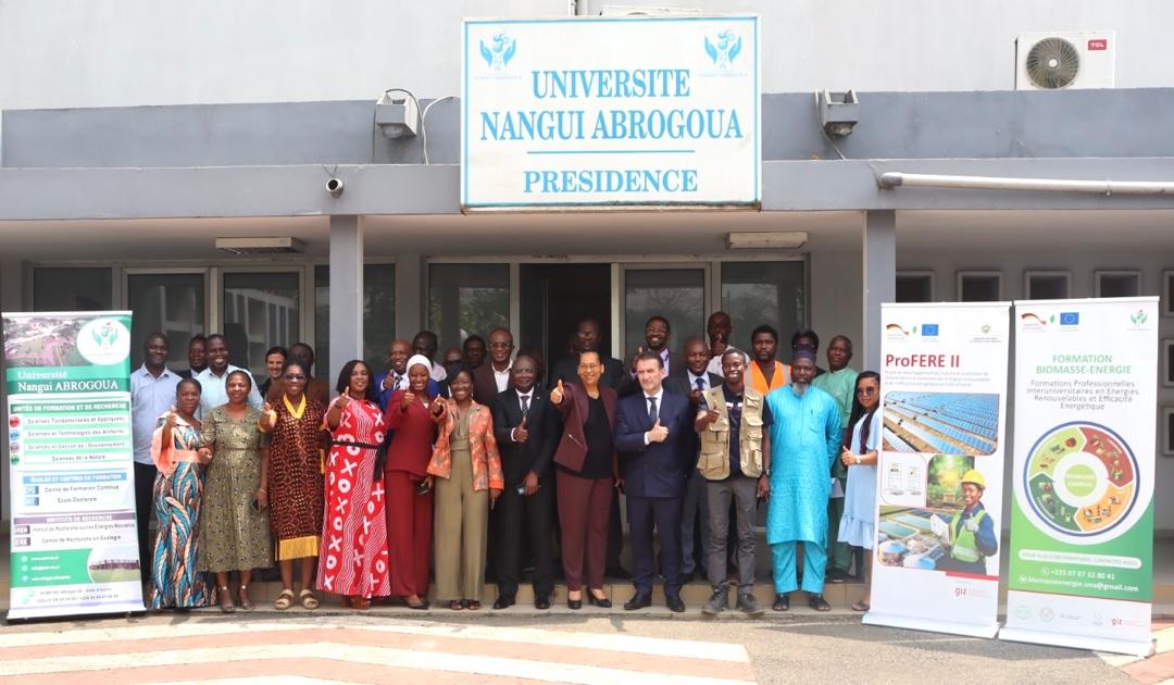 Dans son mot de bienvenue, le Professeur KRE Raymond, Directeur de l’UFR Sciences Fondamentales et Appliquées et point focal UNA du projet AT-ProFERE, a salué l’implication constante de Madame la Présidente de l’UNA dans la mise en œuvre de la formation duale universitaire. Il a exprimé sa reconnaissance à la GIZ et aux entreprises partenaires, désormais co-formateurs, appelés à jouer un rôle déterminant dans la formation d’une nouvelle génération de techniciens et d’ingénieurs capables de valoriser durablement la biomasse.