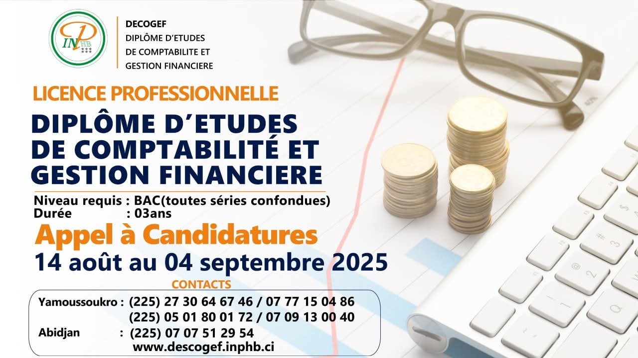 Les candidatures pour la Licence Professionnelle en Comptabilité et Gestion Financière (DECOGEF – INP-HB) sont toujours ouvertes !