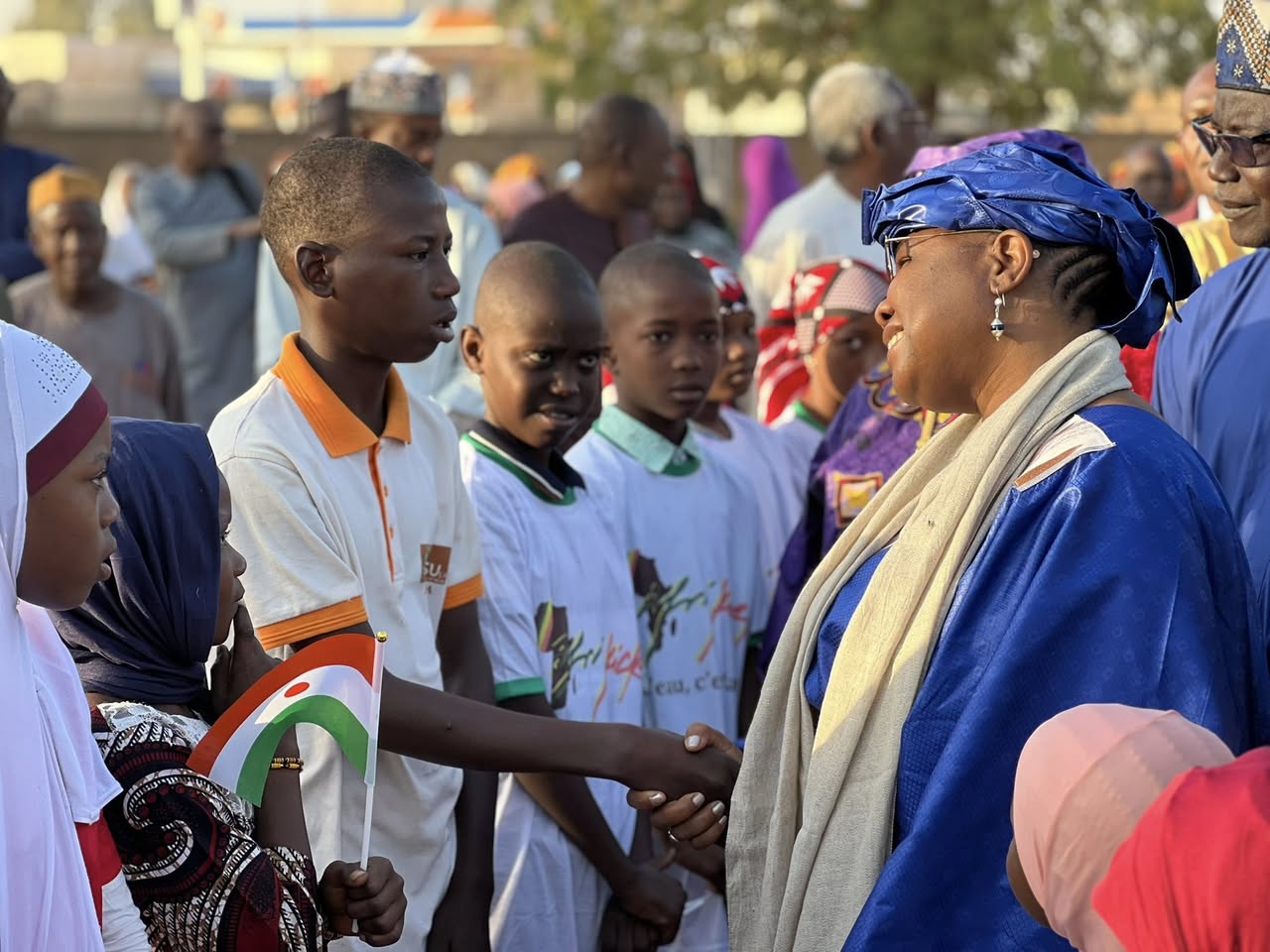 La Ministre de l’Éducation Nationale, de l’Alphabétisation et de la Promotion des Langues, Dr Élisabeth Shérif, a assisté ce jour, lundi 2 février 2026, à la traditionnelle montée des couleurs à l’école primaire Kouado 2, située au quartier Telladjé de Niamey.