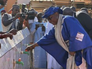 Après la visite de quelques classes, au cours de laquelle elle a prodigué de sages conseils aux élèves, Dr Élisabeth Shérif a procédé à la réception d’un forage offert à l’école primaire Kouado 2 par l’ONG AFRIKICKS, dont le fondateur a fréquenté ce même établissement.