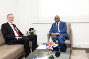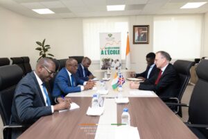 Le mercredi 18 février 2026, Monsieur N’Guessan KOFFI, Ministre de l’Éducation Nationale, de l’Alphabétisation et de l’Enseignement Technique, a accordé une audience à Son Excellence Monsieur John MARSHALL, Ambassadeur du Royaume-Uni en Côte d’Ivoire, au 7ᵉ étage de la Tour B.