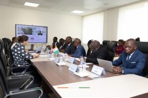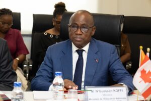 Ce lundi 13 avril 2026, au 7ᵉ étage de la Tour B, Monsieur N’Guessan KOFFI, Ministre de l’Éducation Nationale, de l’Alphabétisation et de l’Enseignement Technique, a reçu en audience une délégation de l’Ambassade du Canada, conduite par Son Excellence Madame Sandra CHOUFANI, Ambassadrice du Canada, dans le cadre du Projet d’Appui à la Gouvernance Administrative et à la Décentralisation (PAGAD).