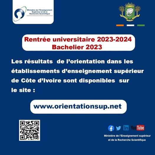 Orientation, Bacheliers 2023, les résultats de l’orientation dans les établissements d’enseignement supérieur sont disponibles sur la plateforme : www.orientationsup.net Source : enseignement.superieur.ci Nombre...