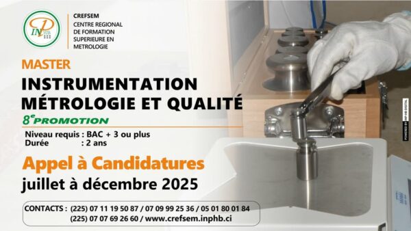 Paradmin147615 août 2025Le CREFSEM – INP-HB vous ouvre les portes de sa 8ème promotion Master instrumentation, métrologie et Qualité. Niveau requis : BAC +3 ou plus...