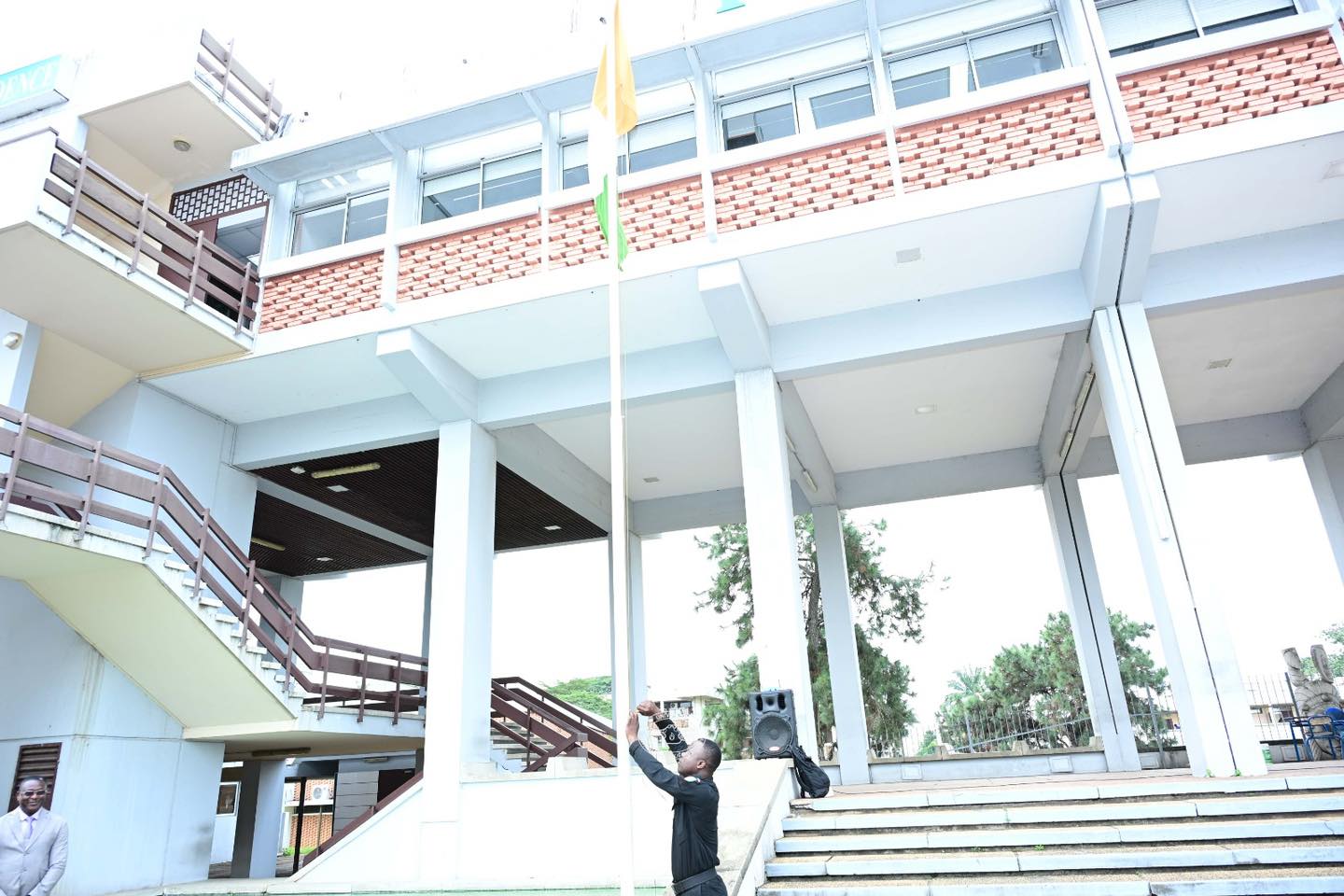 La communauté académique de Université Félix Houphouët-Boigny (UFHB) s’est réunie, ce lundi 2 mars 2026, sur l’esplanade de la Présidence de l’UFHB, pour la traditionnelle cérémonie d’honneur à l’emblème national. Animée par l’Unité de Formation et de Recherche (UFR) Biosciences, la manifestation a rassemblé autour du Président de l’institution, le Prof. BALLO Zié, les vice-présidents, des enseignants-chercheurs, des chercheurs, des étudiants ainsi que les personnels administratifs et techniques.