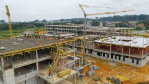 Selon les responsables techniques du chantier, le gros œuvre est déjà réalisé à 55 %, avec un taux global d’avancement général évalué à 17 %. Ces chiffres traduisent la progression régulière d’un chantier qui, une fois achevé, constituera l’un des Centres hospitaliers les plus modernes du pays.
