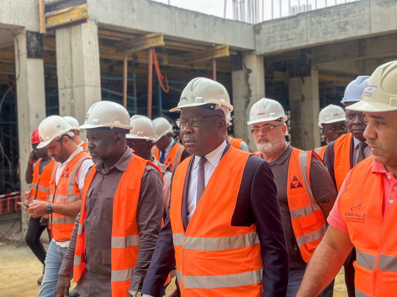 Le Ministre Pierre N’gou DIMBA a saisi l’occasion pour féliciter et encourager l’ensemble des travailleurs mobilisés, saluant la qualité des ouvrages en cours. Il a exprimé sa satisfaction quant à la rigueur et au professionnalisme observés, gage de la livraison d’un établissement conforme aux standards internationaux.